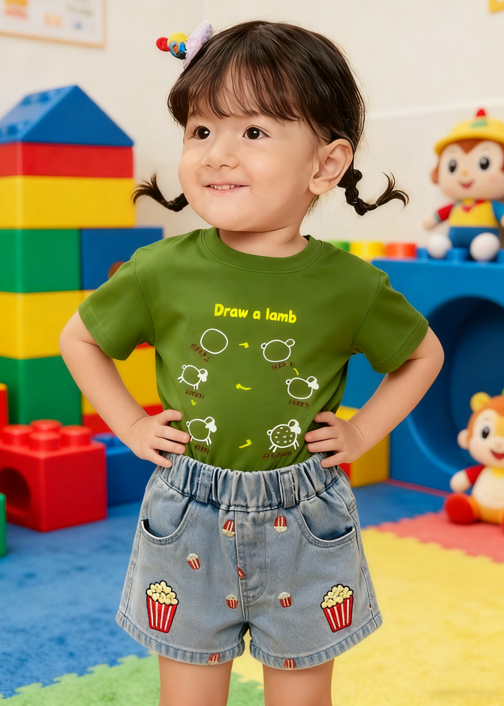 Popcorn Design Denim Pants (Size 130)
