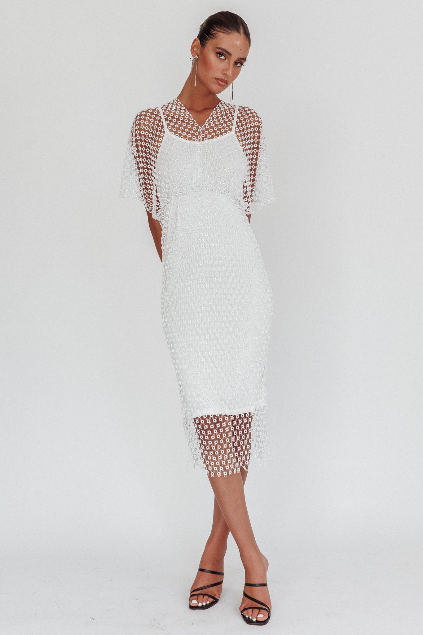 Okay, girl! We see you! You will light up every room in our sparkly Astra midi dress. It features a gorgeous diamante fishnet overlay and a slip mini dress underneath. Wear it out with your girls for a night on the town! Team it with strappy, tie-up heels and a clutch for an unforgettable look.