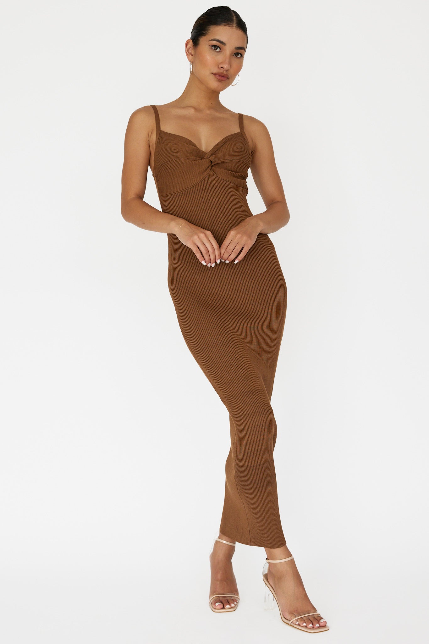 Make a statement in our chic Lover's High midi dress. It features a stretchy, knit fabric and twist detail in the bust. It's perfect for Galentines or a flirty date night with your love! Team it with nude mules and a baguette bag for a head-turning look.