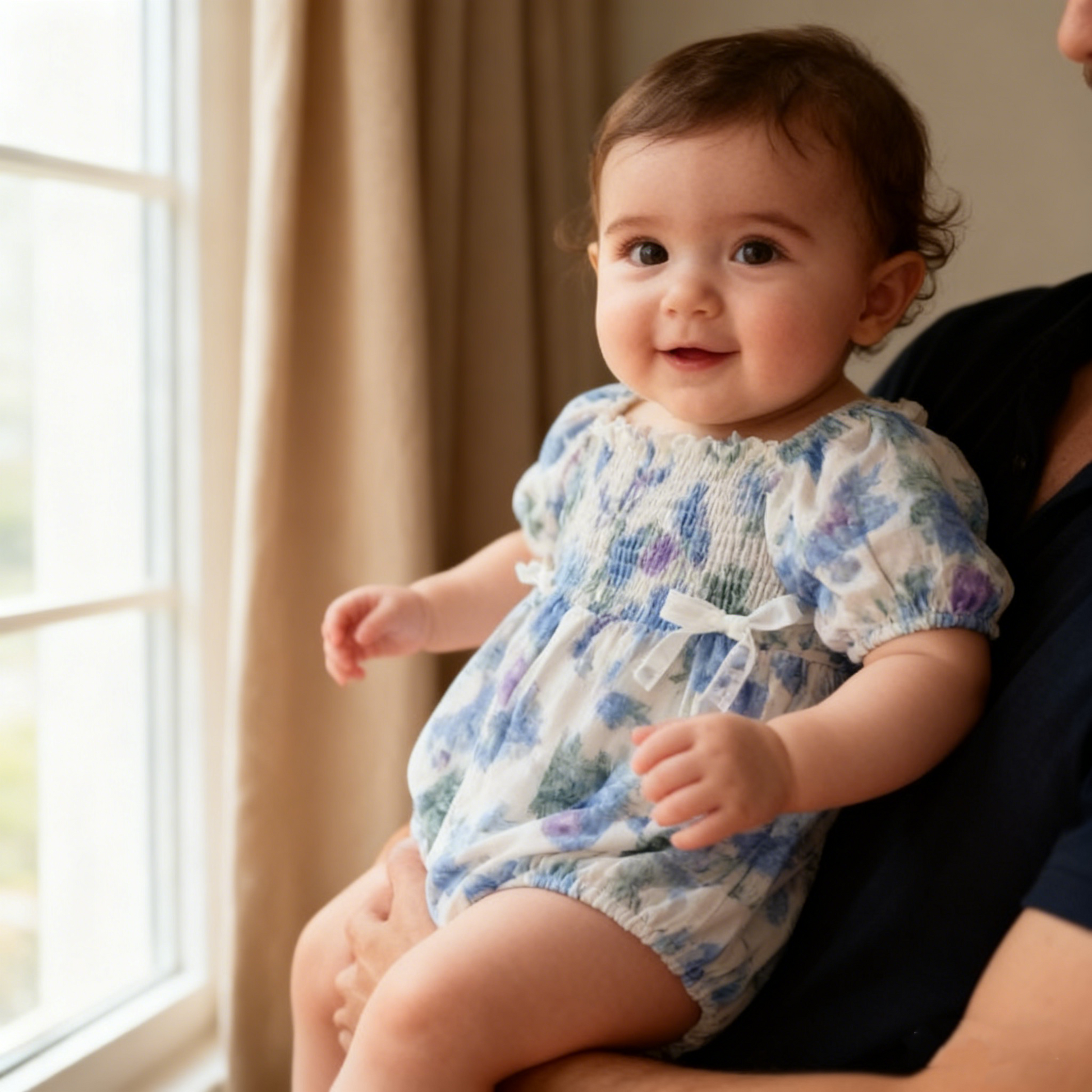 Puff Sleeves Blue Romper (Size 66)